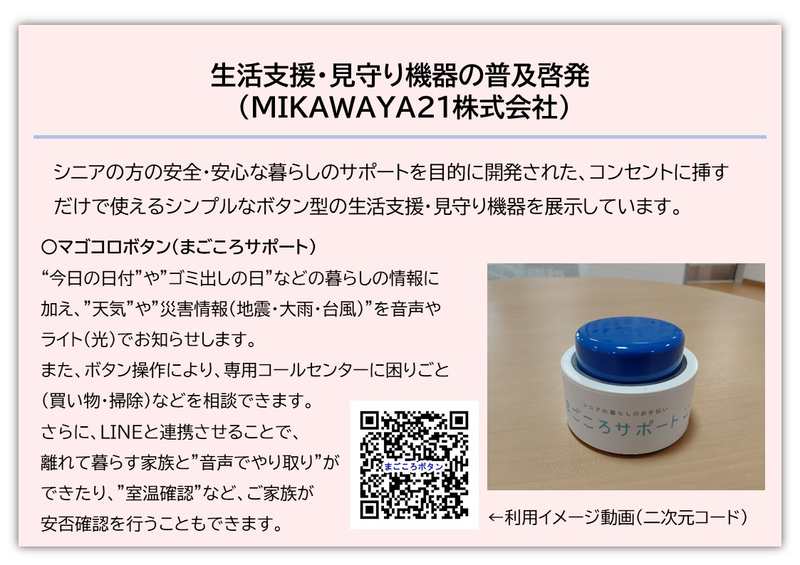 | 介護・リハビリに役立つデジタル技術や最新機器を実際に体験できるイベントなどを開催し、生活の質の向上と介護事業者支援につなげます。 | |