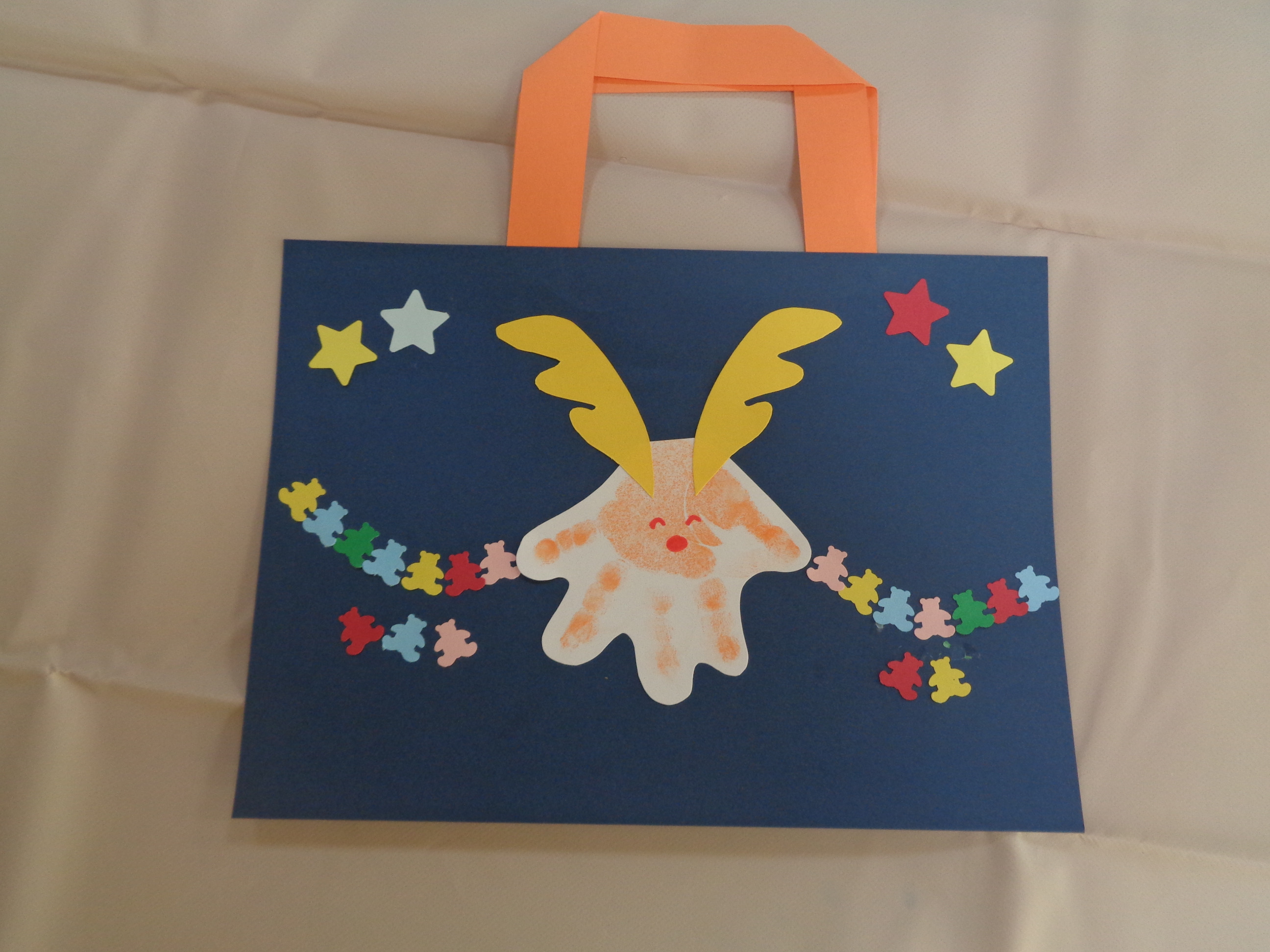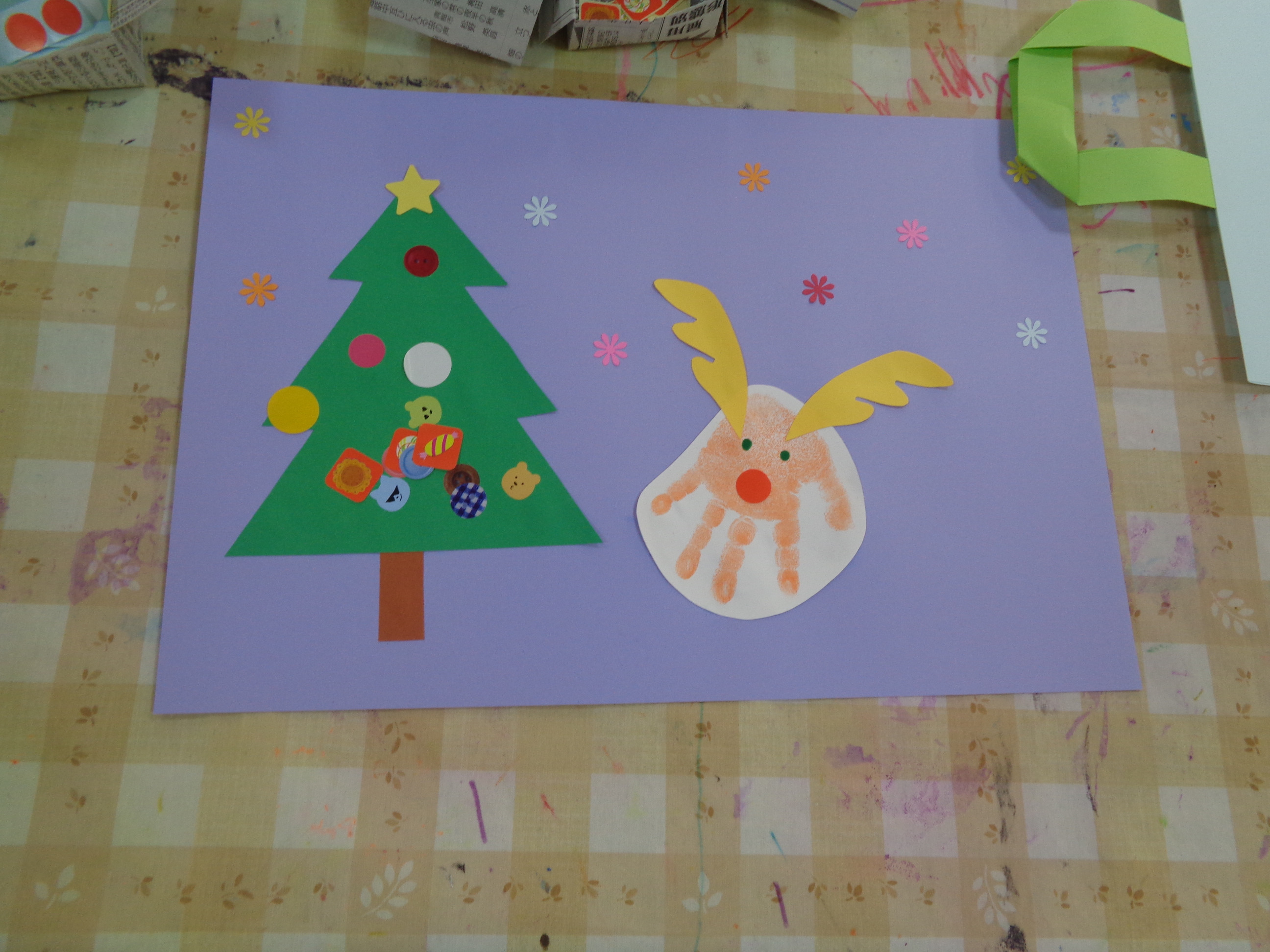 手形でトナカイをかたどり、シールを貼ったり、色を塗ったりと、夢中になって制作し、
