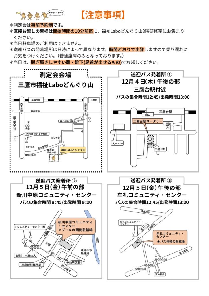 (三鷹台駅ロータリー付近より送迎バス 13:00出発) - 12月5日(金)9:30~11:30