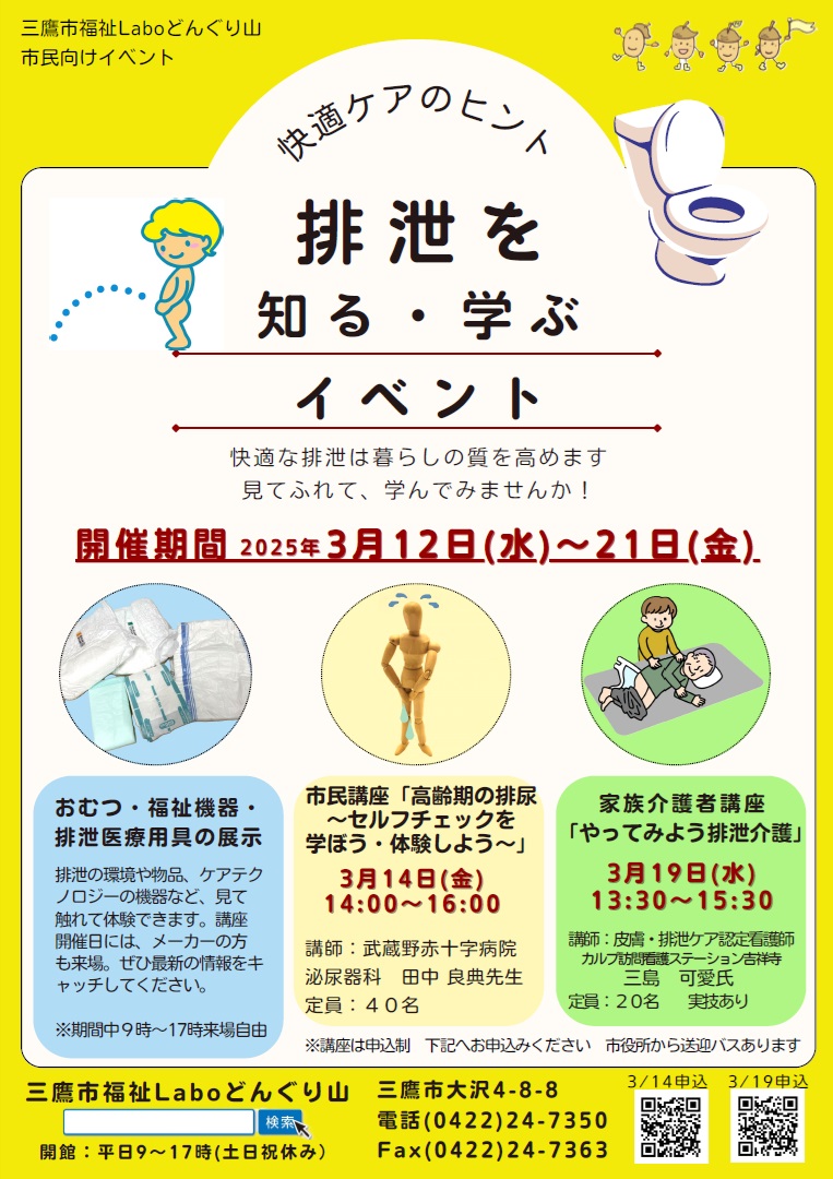 福祉Laboどんぐり山で、「排泄」をテーマとした展示と講座を開催します。