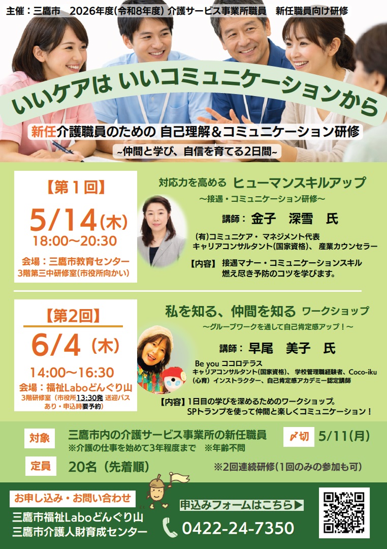 三鷹市内の介護サービス事業所の職員(おおむね3年まで、年齢不問)