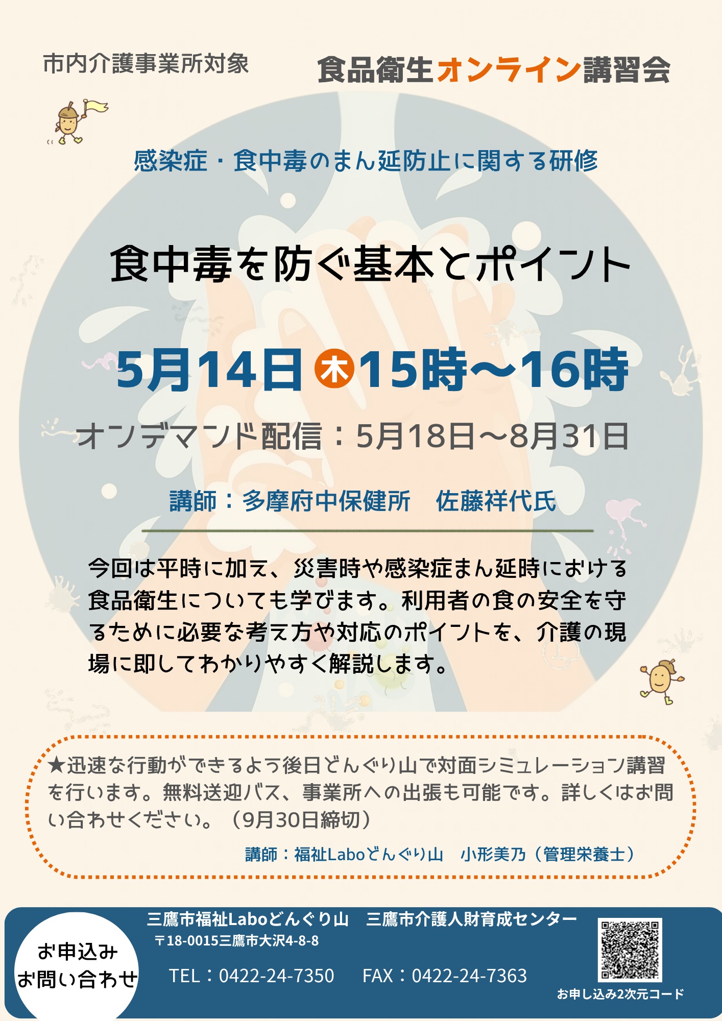 [5/14(木)]市内介護事業所対象『感染症・食中毒のまん延防止に関する研修』 ~食中毒を防ぐ基本とポイント~ 参加者募集