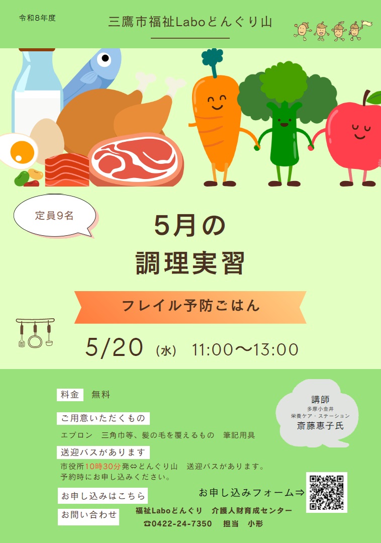 [5/20(水)]フレイル予防ごはん調理実習 参加者募集