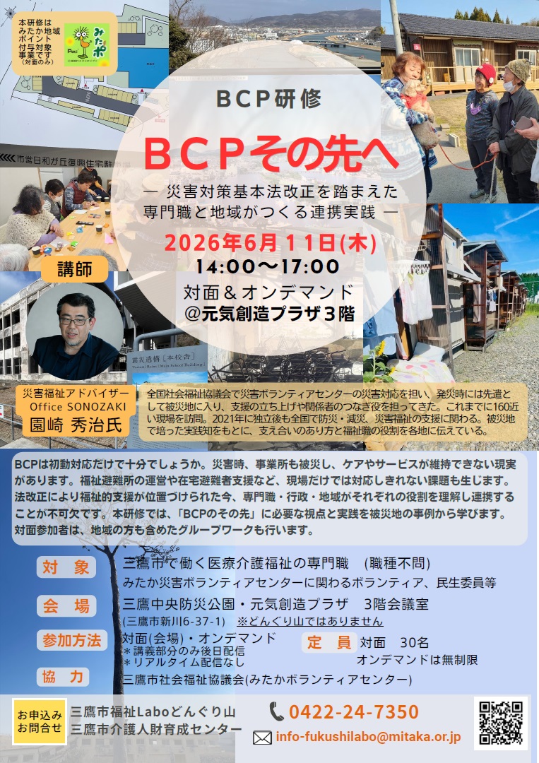 3. [6/11(木)]BCPその先へ ~災害対策基本法改正を踏まえた専門職と地域がつくる連携実践~ 受講者募集