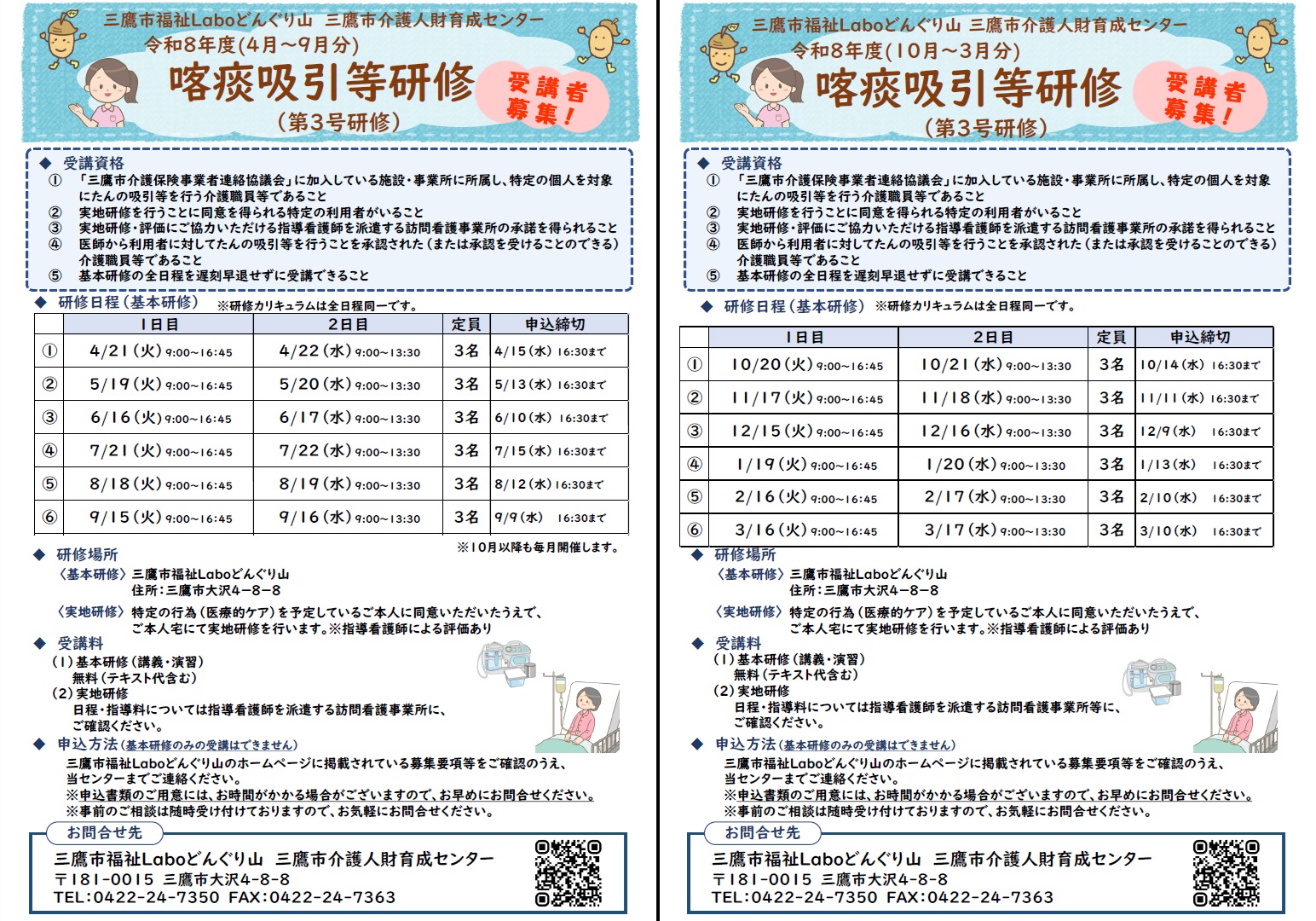 3. 介護人財育成センター喀痰吸引等研修(第3号研修)令和8年度受講生募集